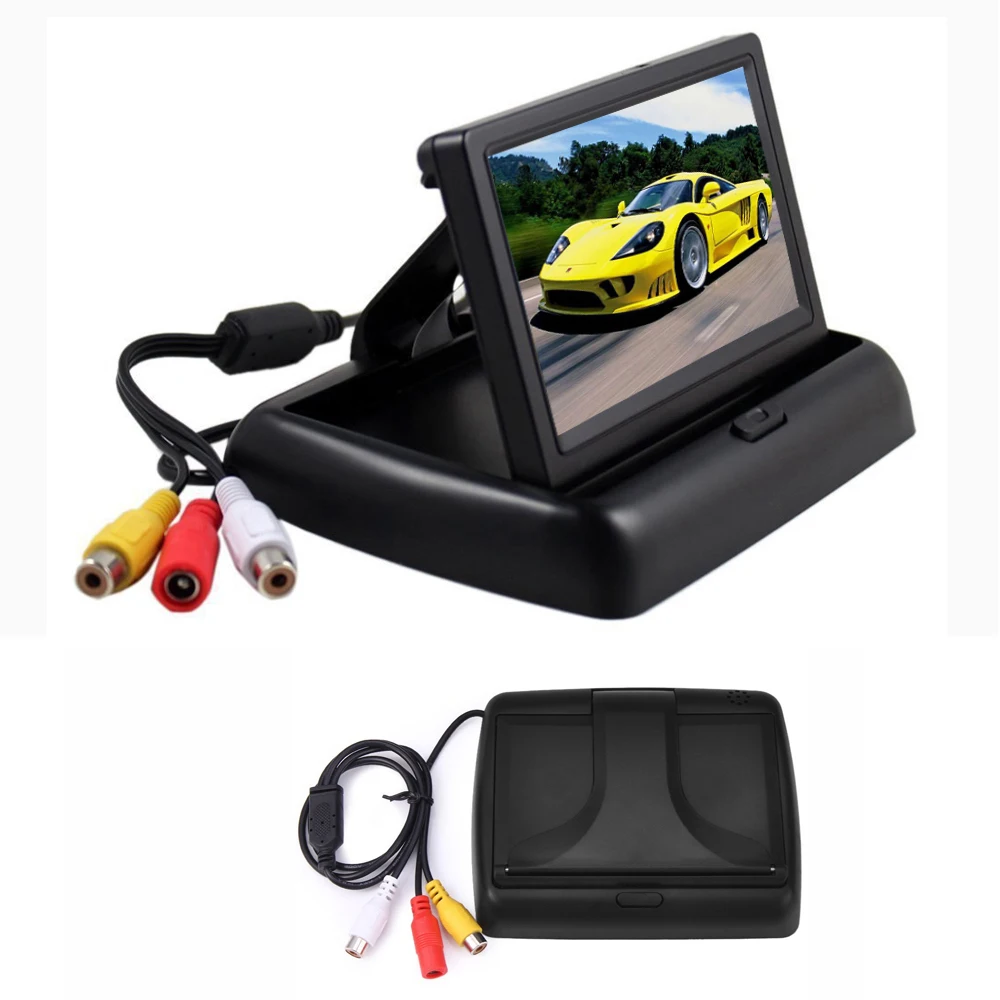 Podofo 4,3 дюймов ЖК-дисплей автомобильный монитор заднего вида Камера парковки Системы для автомобиля Зеркало заднего вида Мониторы складной монитор DisplaySupport NTSC PAL
