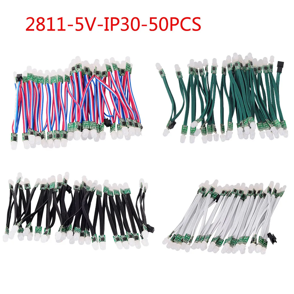 50 шт.струна 9 мм WS2811 цифровой светодиодный пиксельный модуль, 2811 IC RGB, черныйзеленыйбелыйRGB провод, адресный, без водонепроницаемости ip30 DC5v