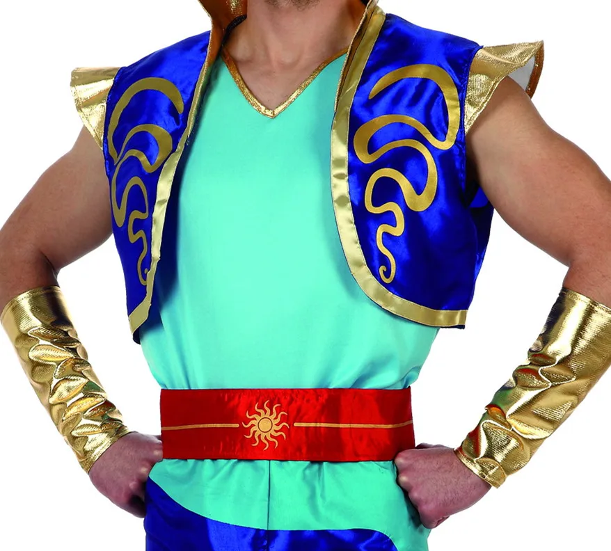 Оптовая продажа, новинка 2016, модный карнавальный костюм, Мужская вечерняя одежда для косплея, трикотажные костюмы Аладдина синего цвета с супергероями