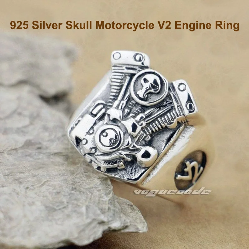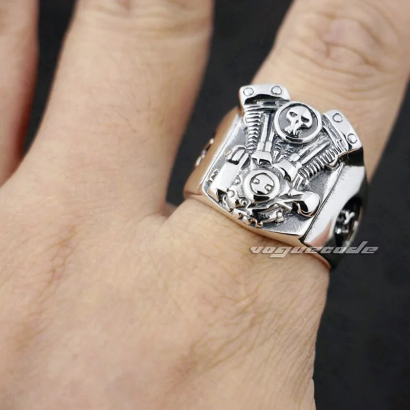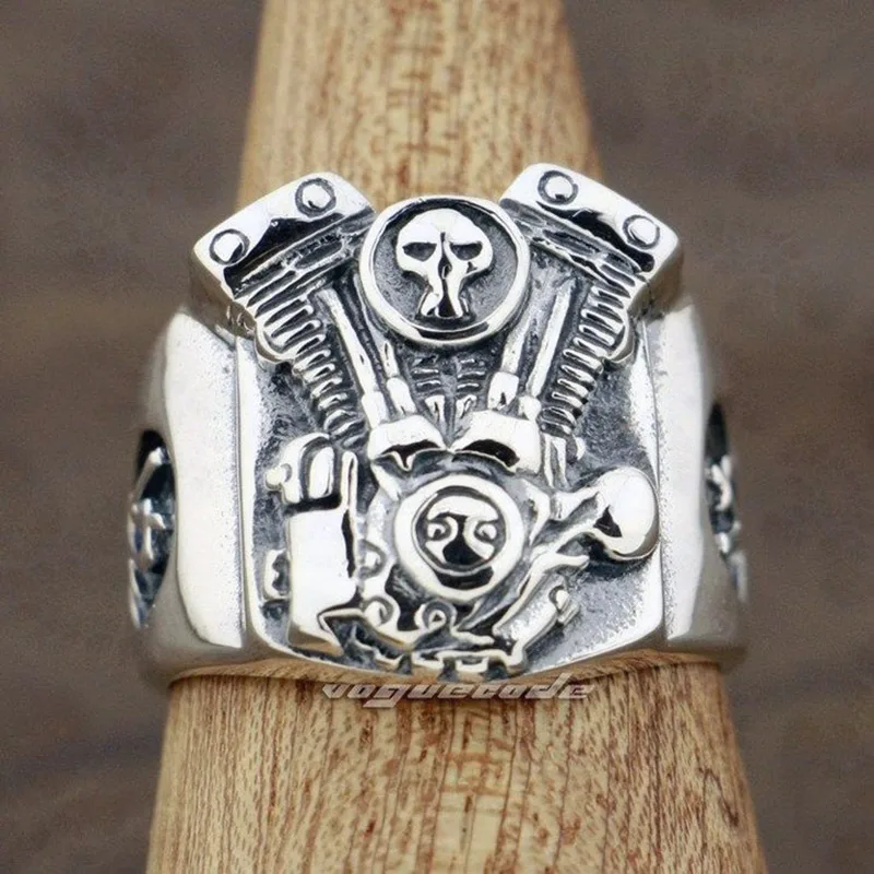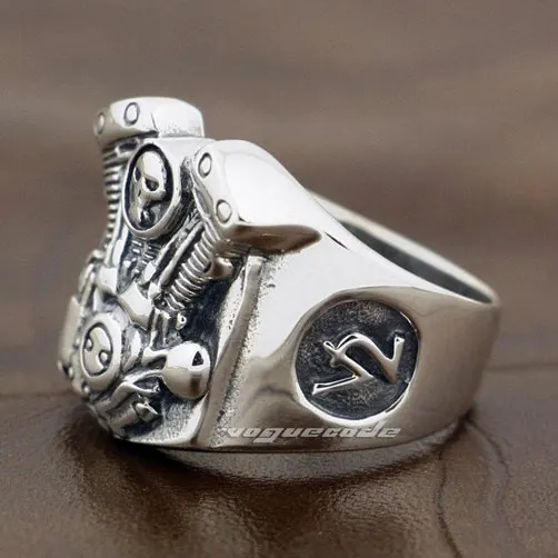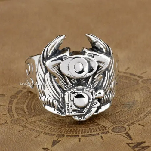 Мужское кольцо с локомотивным двигателем, серебро 925 пробы, череп рыцаря, мотоциклетное кольцо, 8Y009