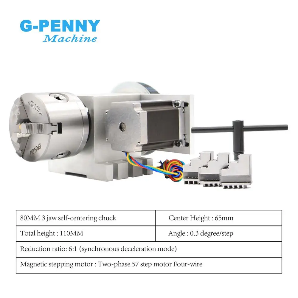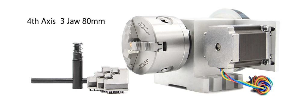 1 шт -- 4-й ось 80 мм 3 кулачковый патрон(Положительная челюсть и Прилавок)