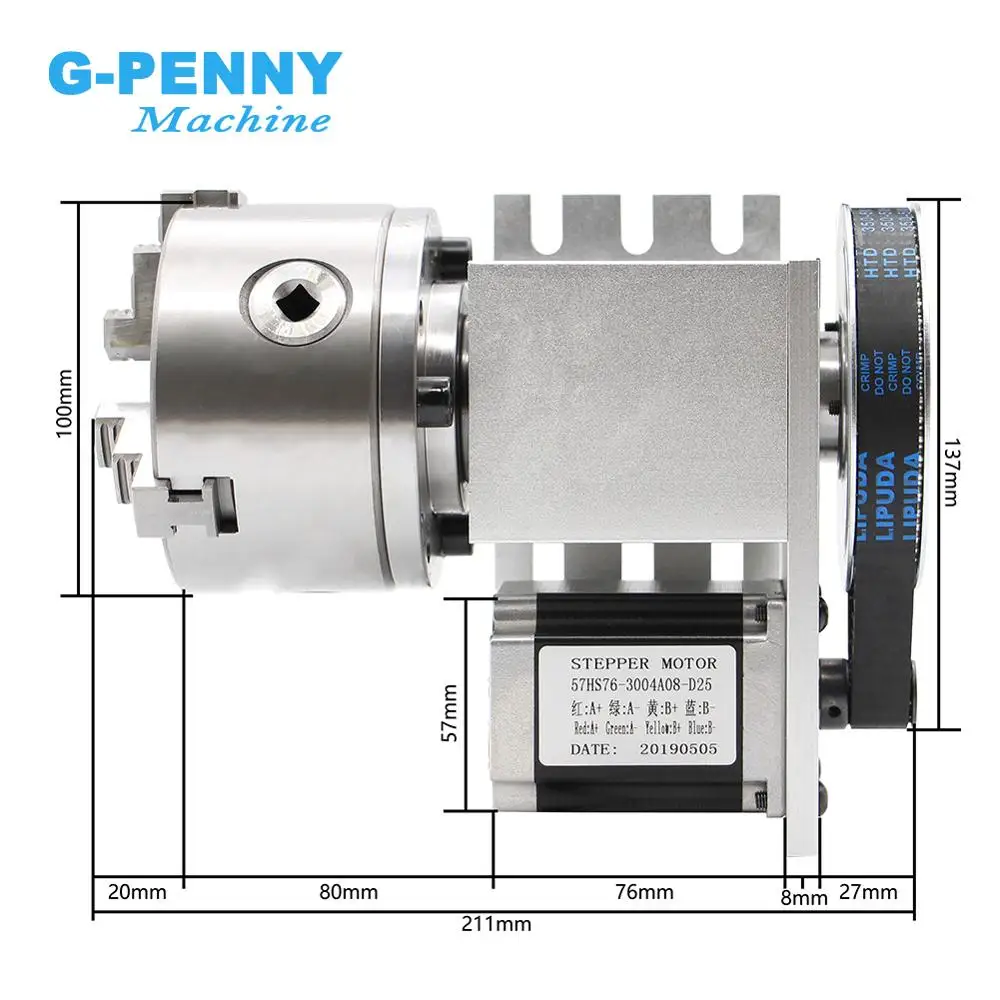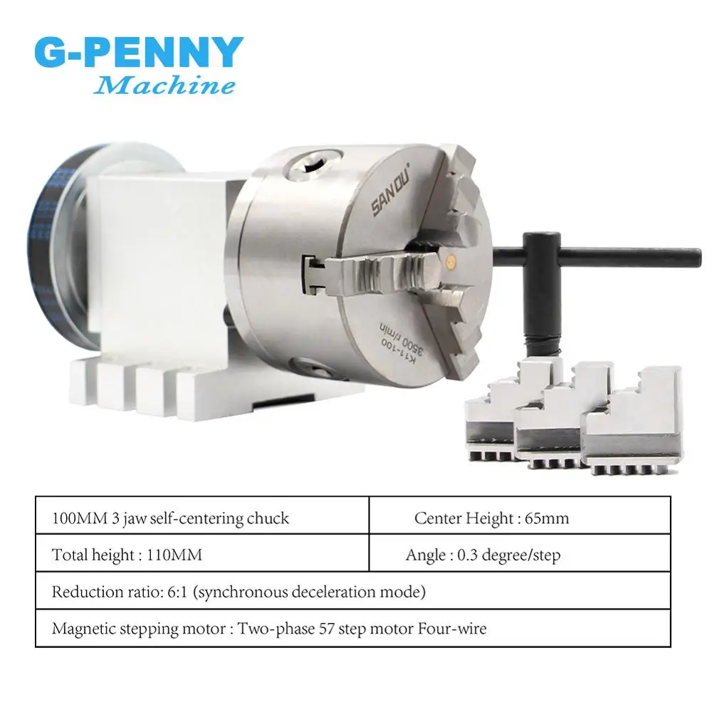 1 шт.-- 4-я ось 100 мм 3-х кулачковый патрон(Положительная челюсть и встречная челюсть)