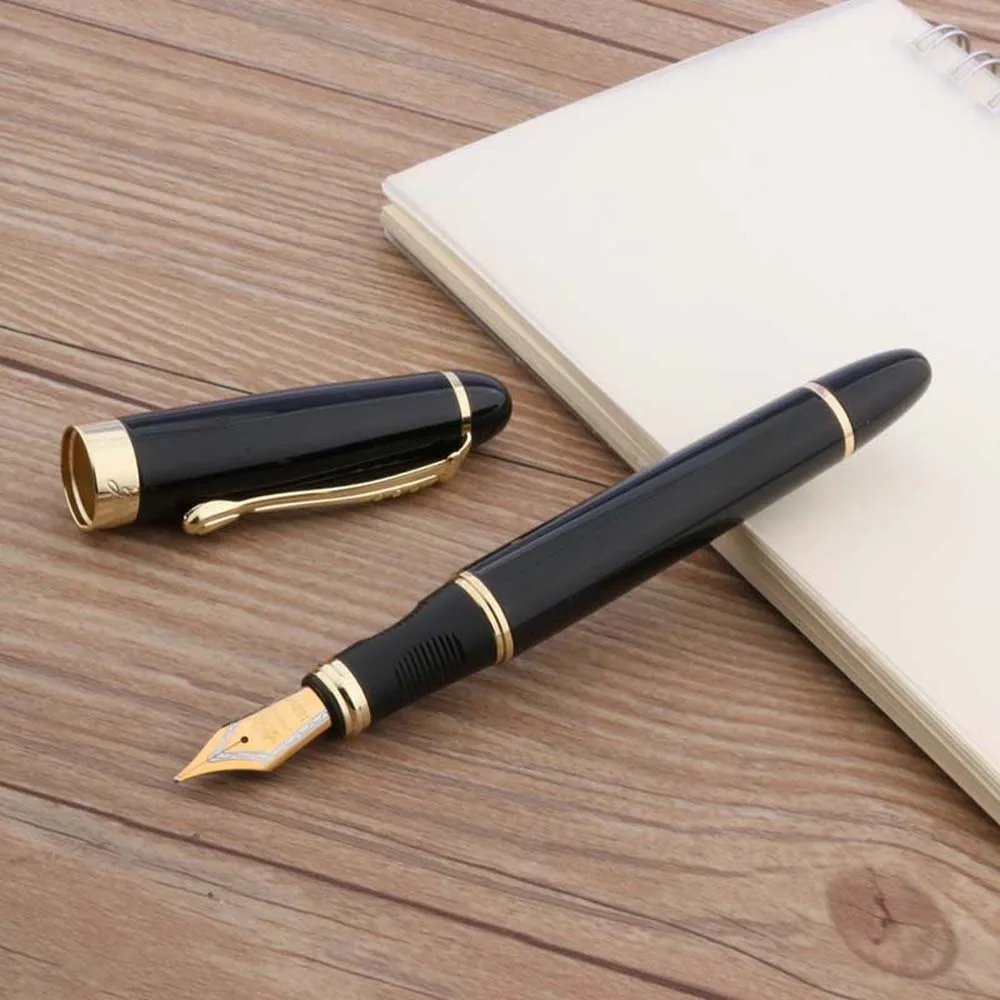 Перьевая ручка JINHAO 450, черная, металлическая, с золотистым зажимом, со средним пером