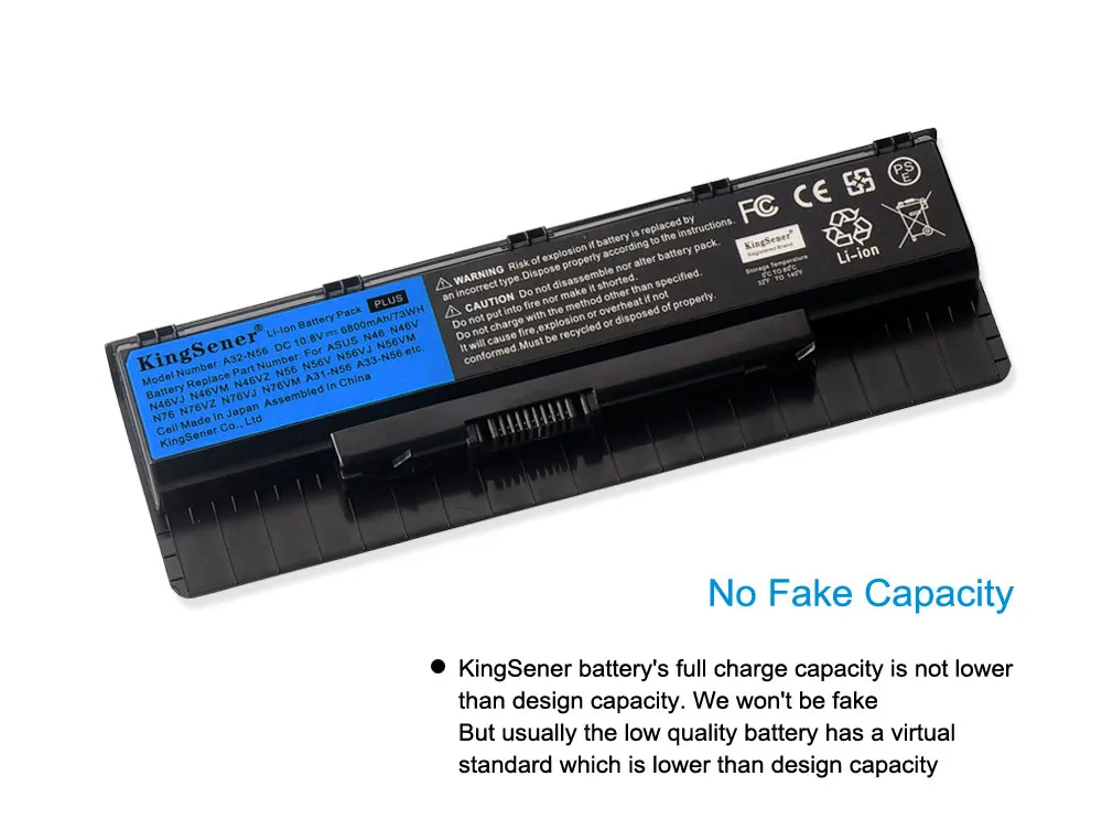 Отличный АКБ на замену старому. Заряд держит до 3,5 часов в рабочем режиме (документы, презентации, офис, интернет, обработка фото). На ноут ASUS N76 в посадочное гнездо встал как влитой, без усилий и натугов, просто одним щелчком). Емкость брал больше чем у родного и по времени работы ощущается что она действительно больше. Проверить реальную ёмкость не могу так как не умею . Доставка была быстрой, пришёл ровно первую дату ожидаемой доставки. Принёс очень вежливый курьер, до квартиры, передал лично в руки. Доволен всем. Сотрудничать с магазином рекомендую)