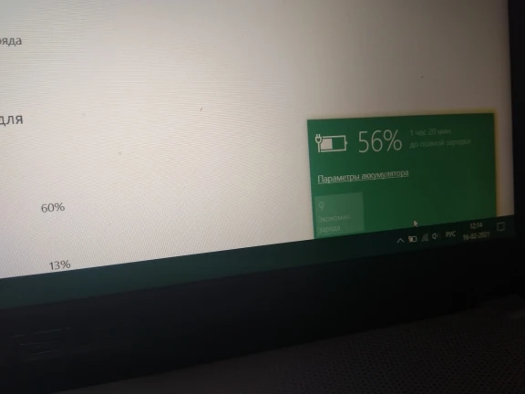 Пришла быстро, за пару дней, с 63% заряда. Начал использовать, ноутбук в один прекрасный момент просто вырубался, такая же фигня была с старым аккумулятором, поменял драйвера на старую версию и все стало нормально работать.