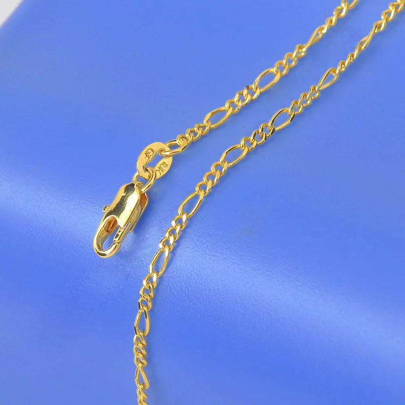 Necklace style18K Solid Yellow Gold Filled Men's Long Figaro Necklace Chains