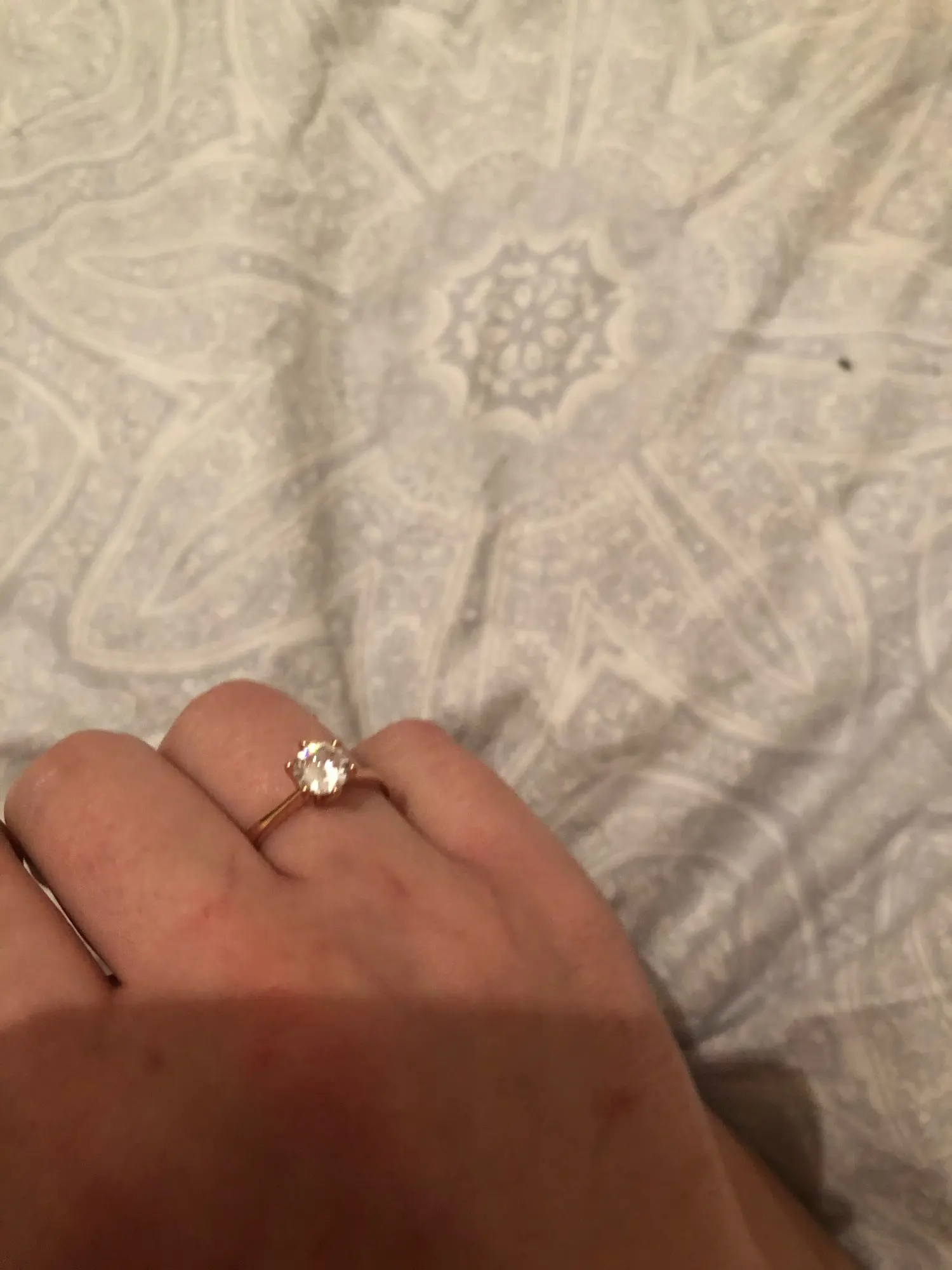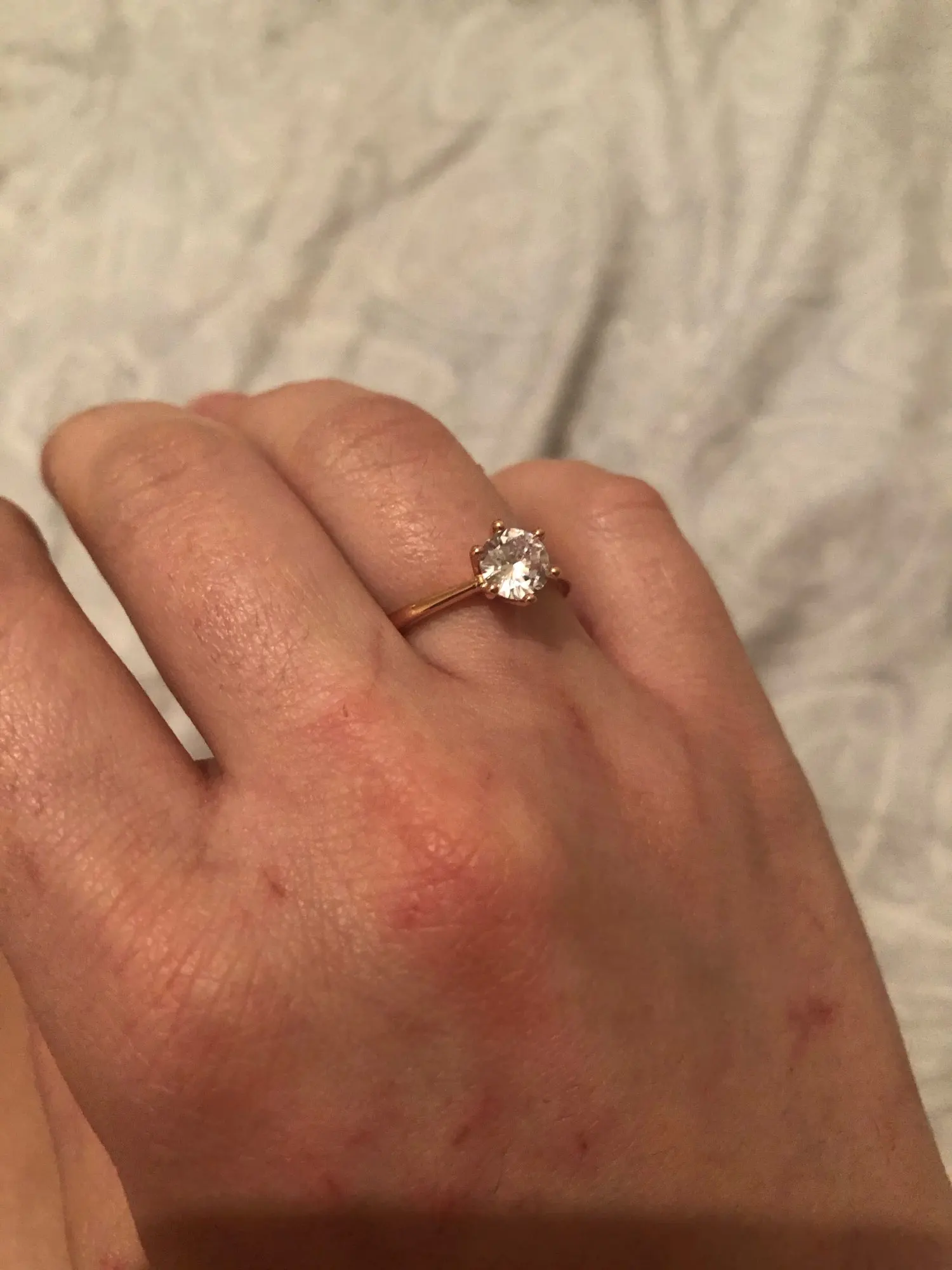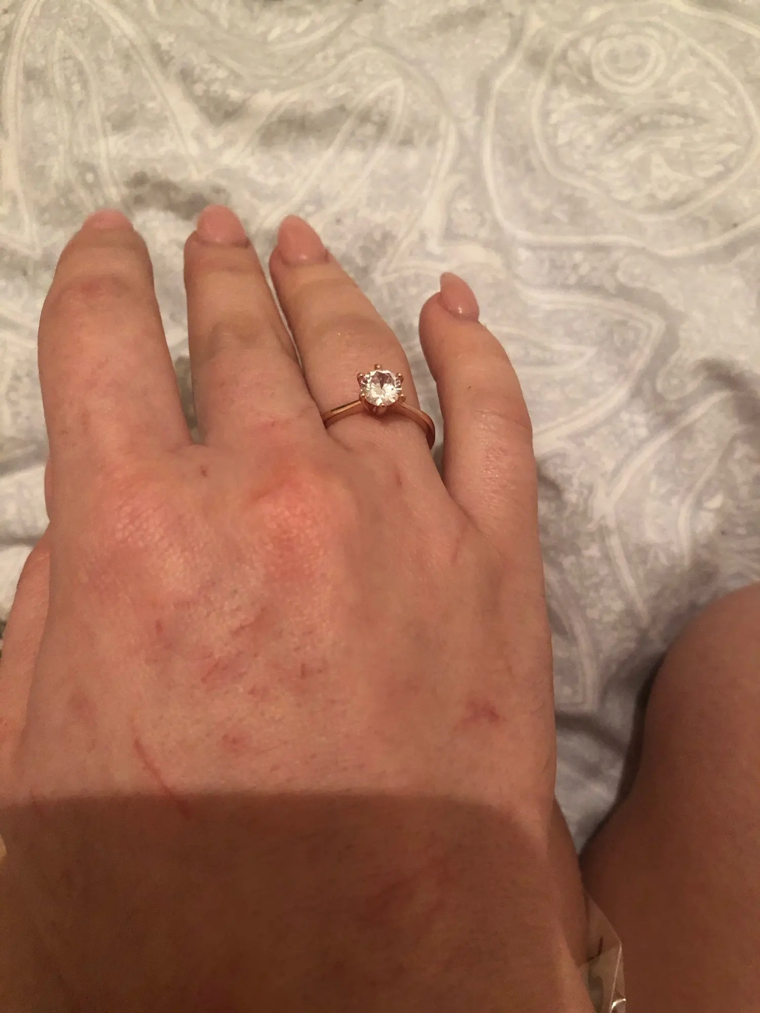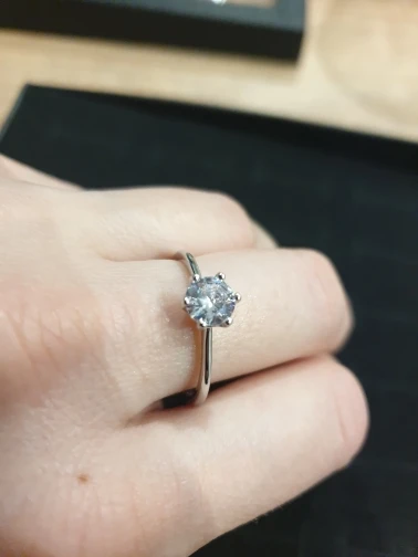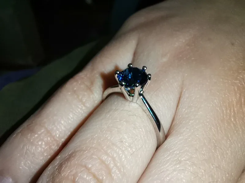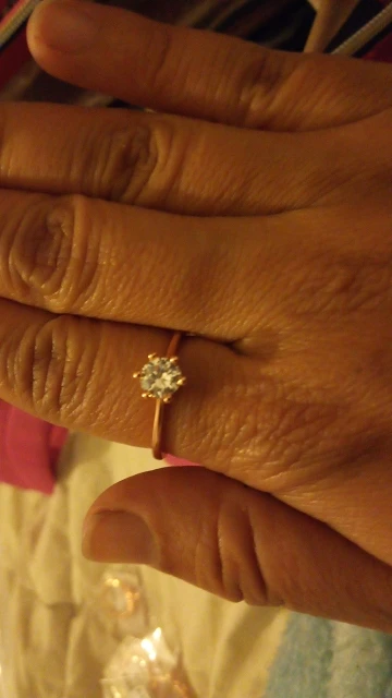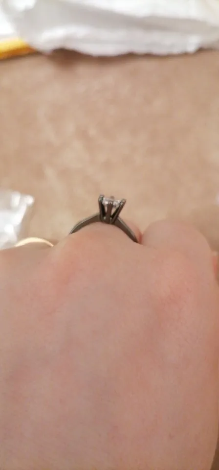 Пришло до Тамбова достаточно быстро( было в наборе с другим товаром). Выглядит довольно таки мило даже на моей пораненной руке. Влезло только на безымянный палец, но у меня достаточно большой размер кольца. Очень ярко блестит и само кольцо и камень. Смотрится красиво, особенно из далека.