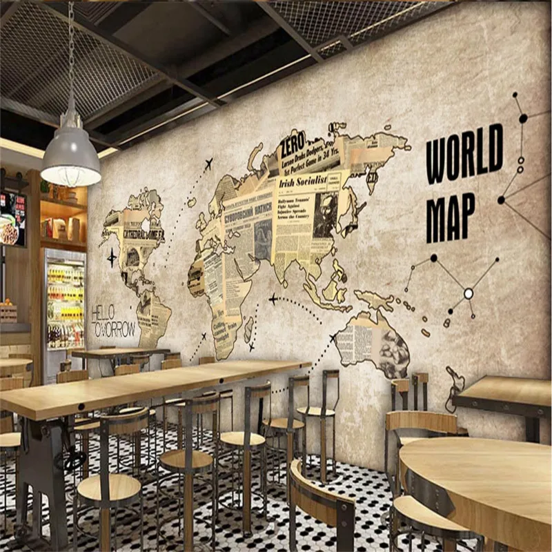 Ретро мир обои с картой для бара Кофейни 3d настенная бумага винтажная декоративная живопись фон для дома улучшение