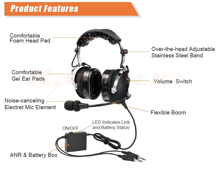 Активное шумоподавление, Высококачественная авиационная гарнитура.