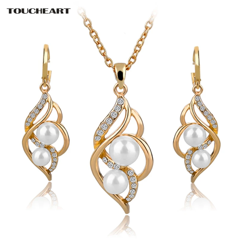 TOUCHEART индийские свадебные ювелирные наборы из искусственного жемчуга для женщин Свадебные серьги золотого цвета с кристаллами эффектные ожерелья SET140024