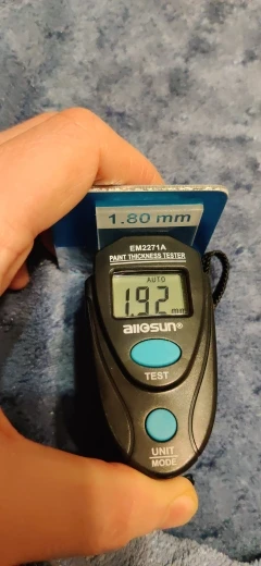 Заказ получил 21.09.2020г. Упаковка без повреждений. Комплектность содержимого: толщиномер, батарейка (внутри), пластина (биметалл??!!), пластина 1.80 (прозрачный пластик), инструкция на русском (удивило). Перечитал несколько раз инструкцию, но доступность некоторых функций не оценил: - Fe, nFe - зачем эти функции, везде показывают 0.01мм??? Поэтому замеряю только на Auto; - как калибровать в ручную тоже не понятно, значения не сохраняет. Погрешность измерений больше чем заявлено, 10% при первом замере, видно на фото. Прошёлся по кузову своего MB w202, значения от 0.04 до 0.10 (т.е. 40-100 микрон), хотя эксперты утверждают ЛКП для MB д.б. в пределах 0.16 - 0.18. Главное не 0.20 и более, тогда деталь по-любому крашеная. Вообщем работает, не профессиональная, но любительская вещь.