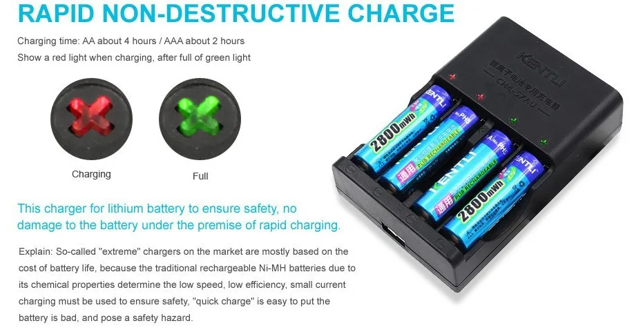 KENTLI 4 шт. 1,5 v 1180mWh мАч литий-ионная аккумуляторная элементов питания типа AAA + 4 слота зарядное устройство для никель-кадмиевых или никель-металл-AAA Зарядное устройство