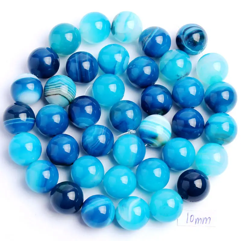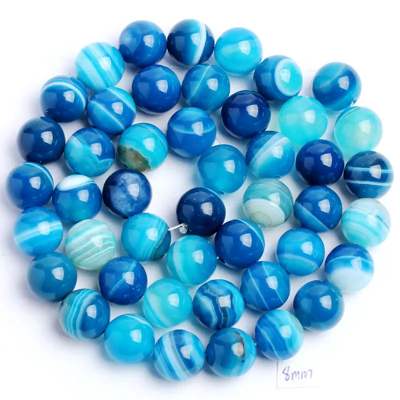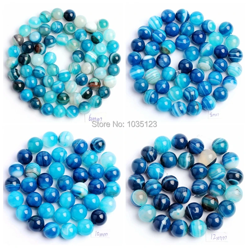 Высококачественные натуральные синие полосатые Агаты оникс круглой формы 468101214 мм DIY Самоцветы свободные бусины нитка 15 "Изготовление ювелирных изделий wj35