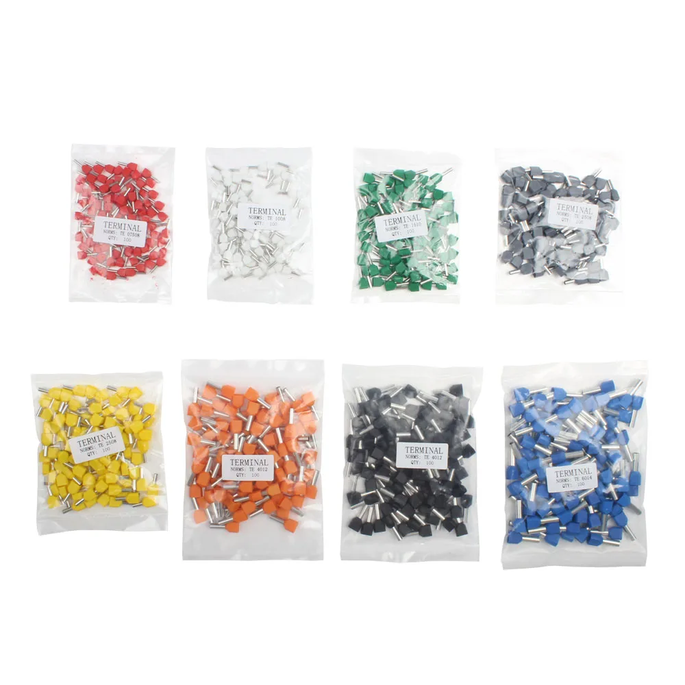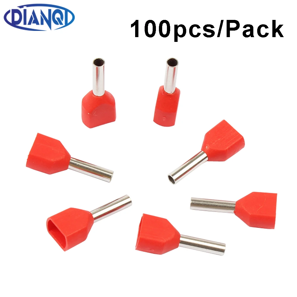 100pcsPack TE7508 TE1008 TE1510 TE2508 Two Pre-insulated Pipe-shaped End Cold pressed terminalsCable ConnectorWire Connector