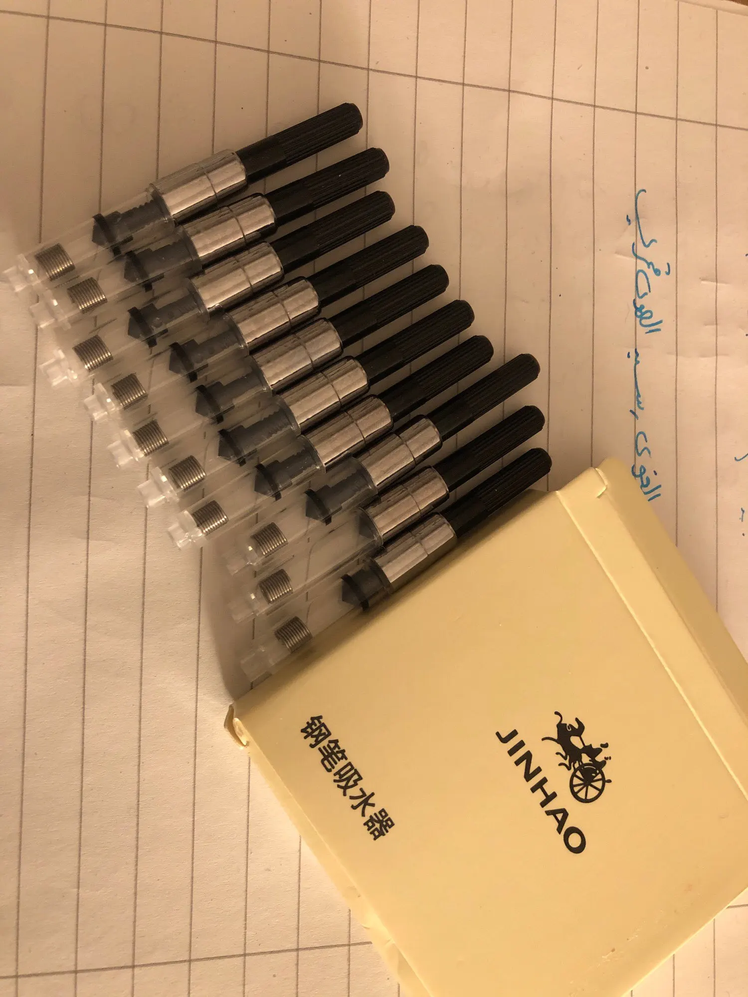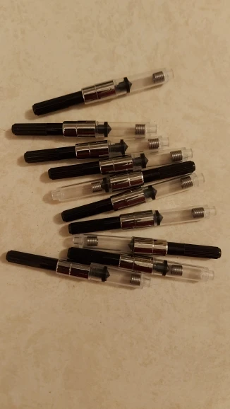Рад, что получил эти конвертеры, но я только сожалею, что они имеют низкую емкость. Я думал, что они будут похожи на те, что поставляются с ручками Jinhao, но они меньше. В противном случае конструкция кажется очень аккуратной, поэтому я думаю, что она будет работать отлично, но это заставит меня всегда иметь мои бутылки с чернилами рядом. Если у вас есть выбор, поэтому я рекомендую эти конвертеры для отдельных целей, потому что, если вы ожидаете большую способность записи, вы можете быть разочарованы. Так что все зависит от вашего потребности и использования.
