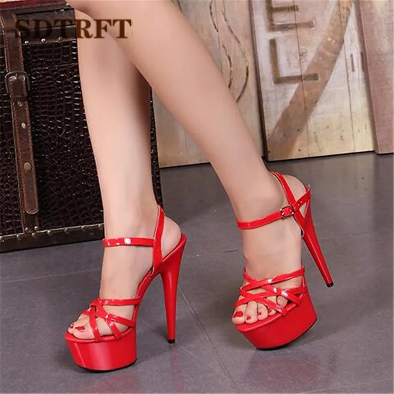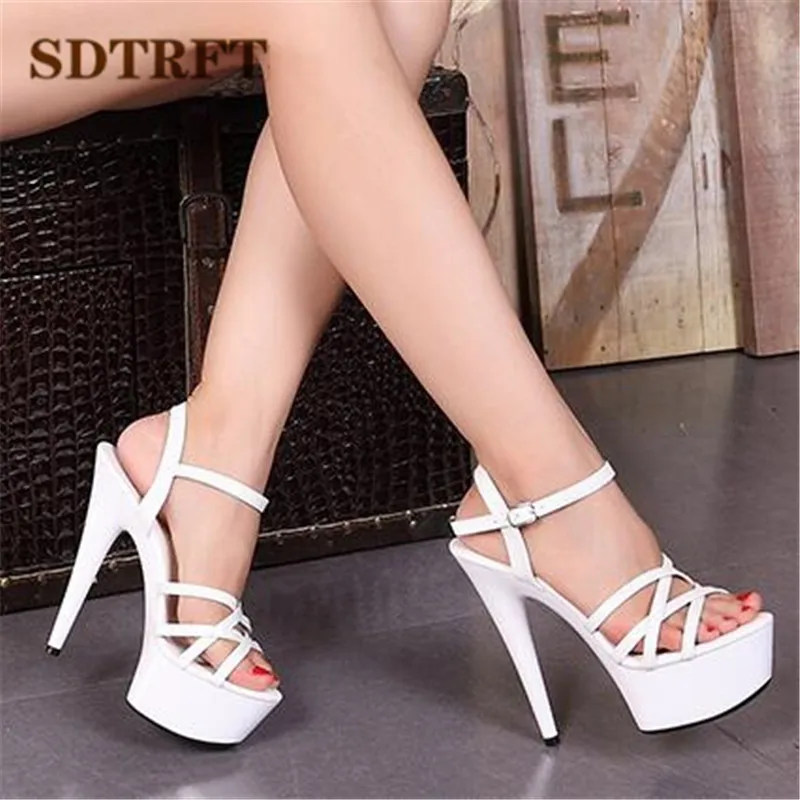 SDTRFT, большие размеры 35-44, бесплатная доставка, брендовые туфли-лодочки для трансвеститов, летние пикантные туфли на тонком каблуке 15 см до щиколотки, женские сандалии с ремешком