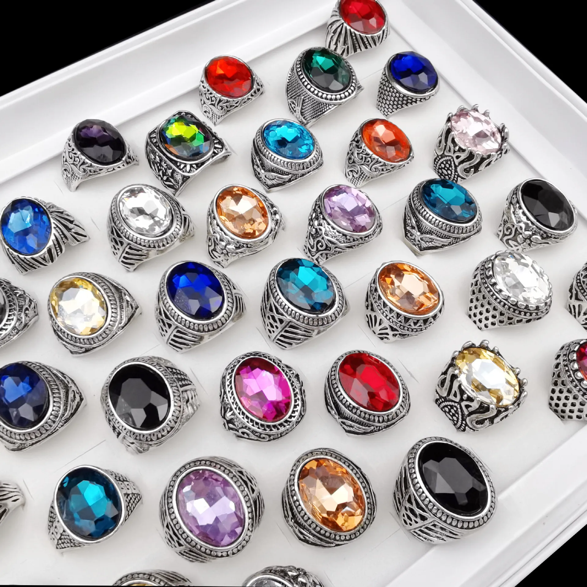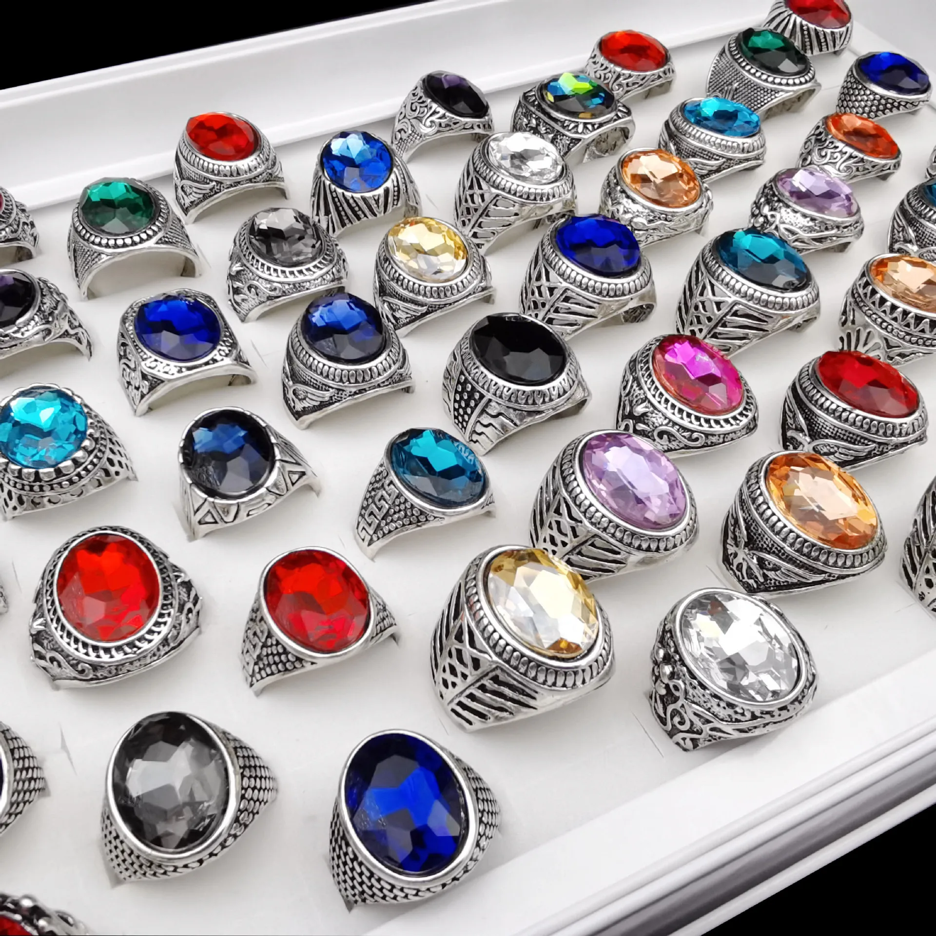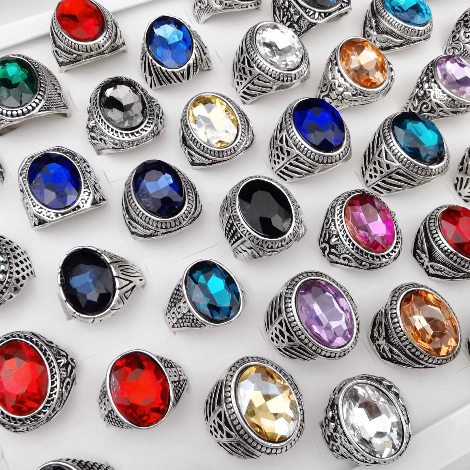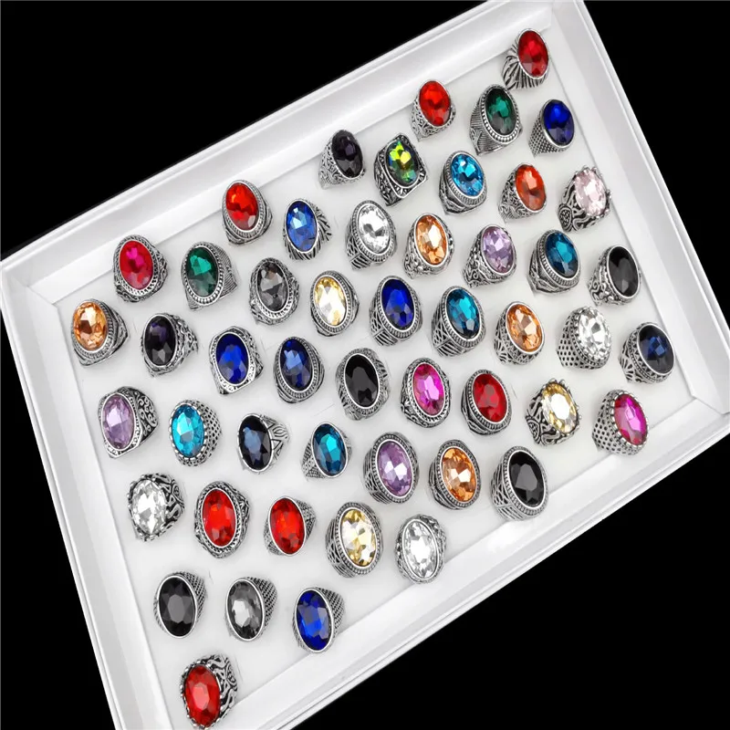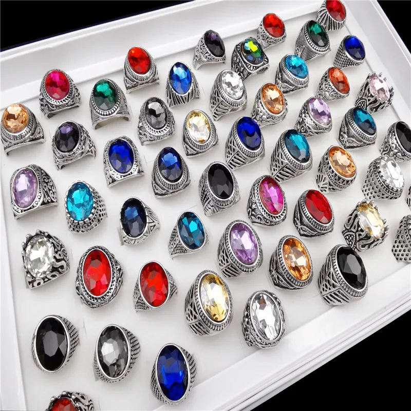 Оптом 50 шт.лот винтажные металлические стеклянные кольца с камнем для мужчин и женщин ювелирные изделия подарок обручальные кольца разные стильные цвета