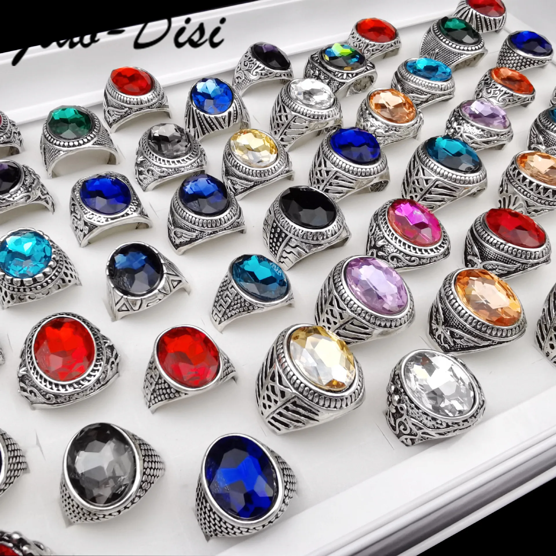 Материал: сплав + стеклоРазмер кольца: от 18 мм до 21 мм смешанный размер отправляется случайным образомСтиль: смешанный стиль отправляется случайным образомКоличество: 50 шт.Цвет: многоцветный sУпаковка: Opp мешок, дисплей коробка не включает