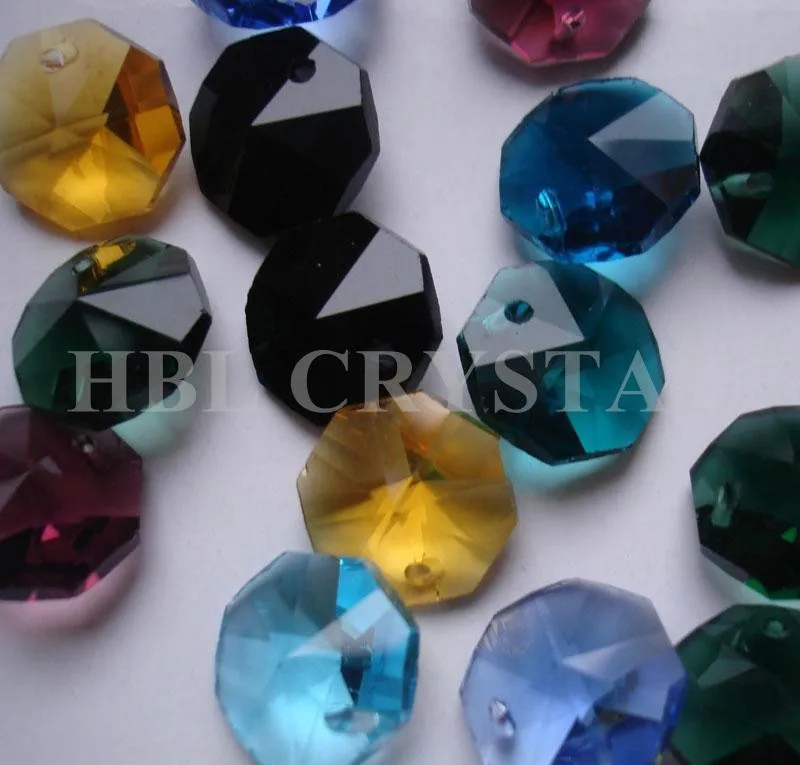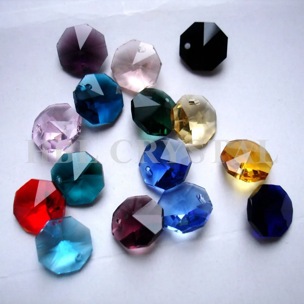 Стеклянные Восьмиугольные бусины, стеклянные Восьмиугольные бусины с отверстием, 15 цветов, смешанные, 14 мм, 100 шт.лот, бесплатная доставка