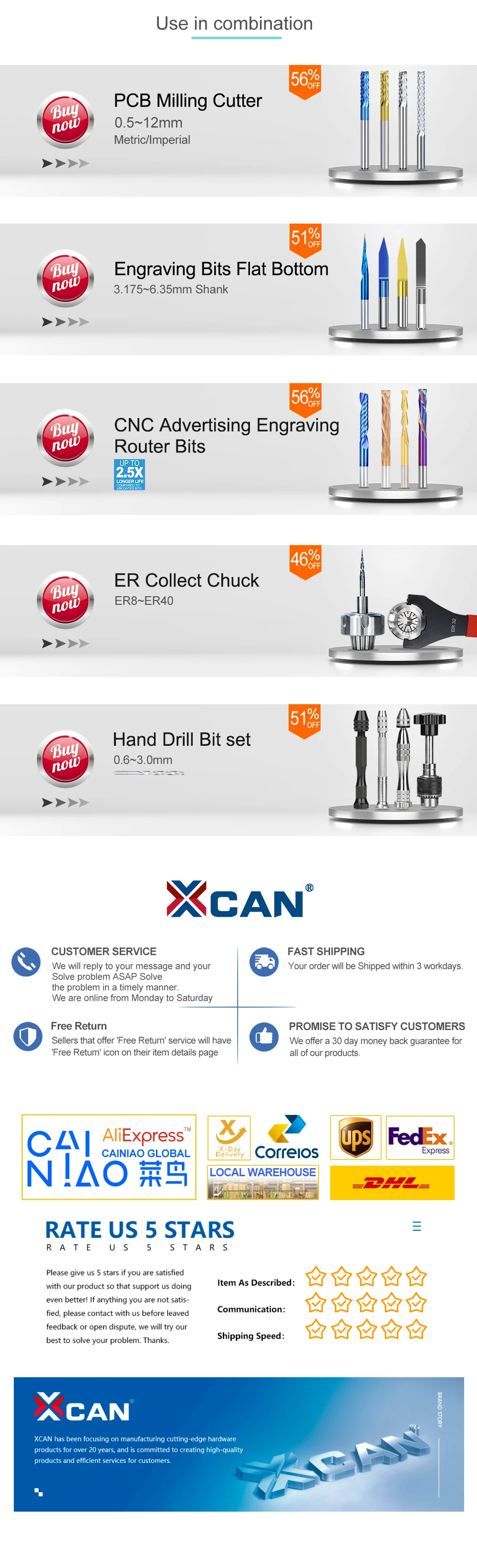 Набор сверл XCAN 0,8 мм, 10 шт.лот, карбидные сверла с ЧПУ для печатных плат