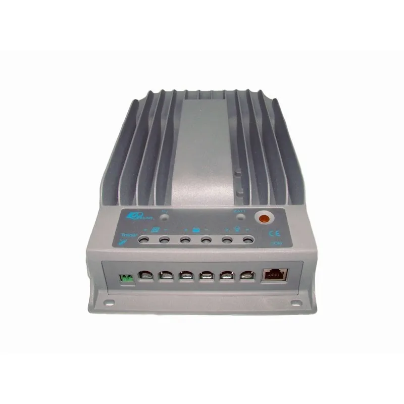 Особенности:. Инновационная технология MPPT. Максимальная эффективность преобразования 98%. Высокая эффективность отслеживания до 99%. Скорость отслеживания за несколько секунд. Литой алюминиевый дизайн и естественное охлаждение. Компенсация температуры. Разнообразный контроль нагрузки для удовлетворения различных требований. Четыре варианта типа батареи: герметичный, ГЕЛЕВЫЙ, затопленный и пользовательский. Интеллектуальное управление освещением и таймером для системы солнечного освещения. Функция статистики энергии. Порты RS485 с протоколом MODBUS. Дополнительное программное обеспечение для мониторинга ПК и дистанционный счетчик для контроля в реальном времени и настройки параметров управления батареей. Обновляемая прошивка