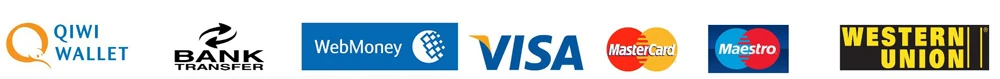 Мы принимаем Alipay, West Union, TT. Основные кредитные карты принимаются платежным процессором ESCROW.