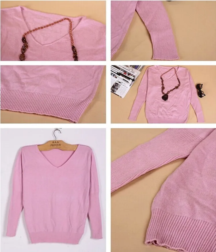 Свитер шерстяной женский шерстяной, с V-образным вырезом и длинными рукавами