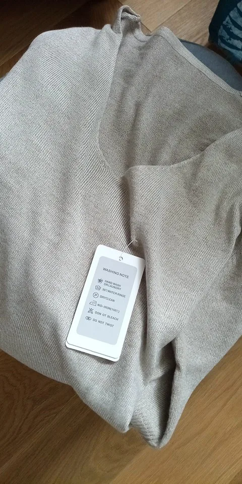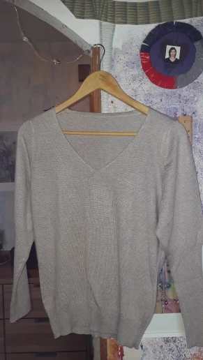 Очень крутой мягкий свитер. Цвет холодно бежевый , материал тонкий , размер на ог100 как раз, немного оверсайз.