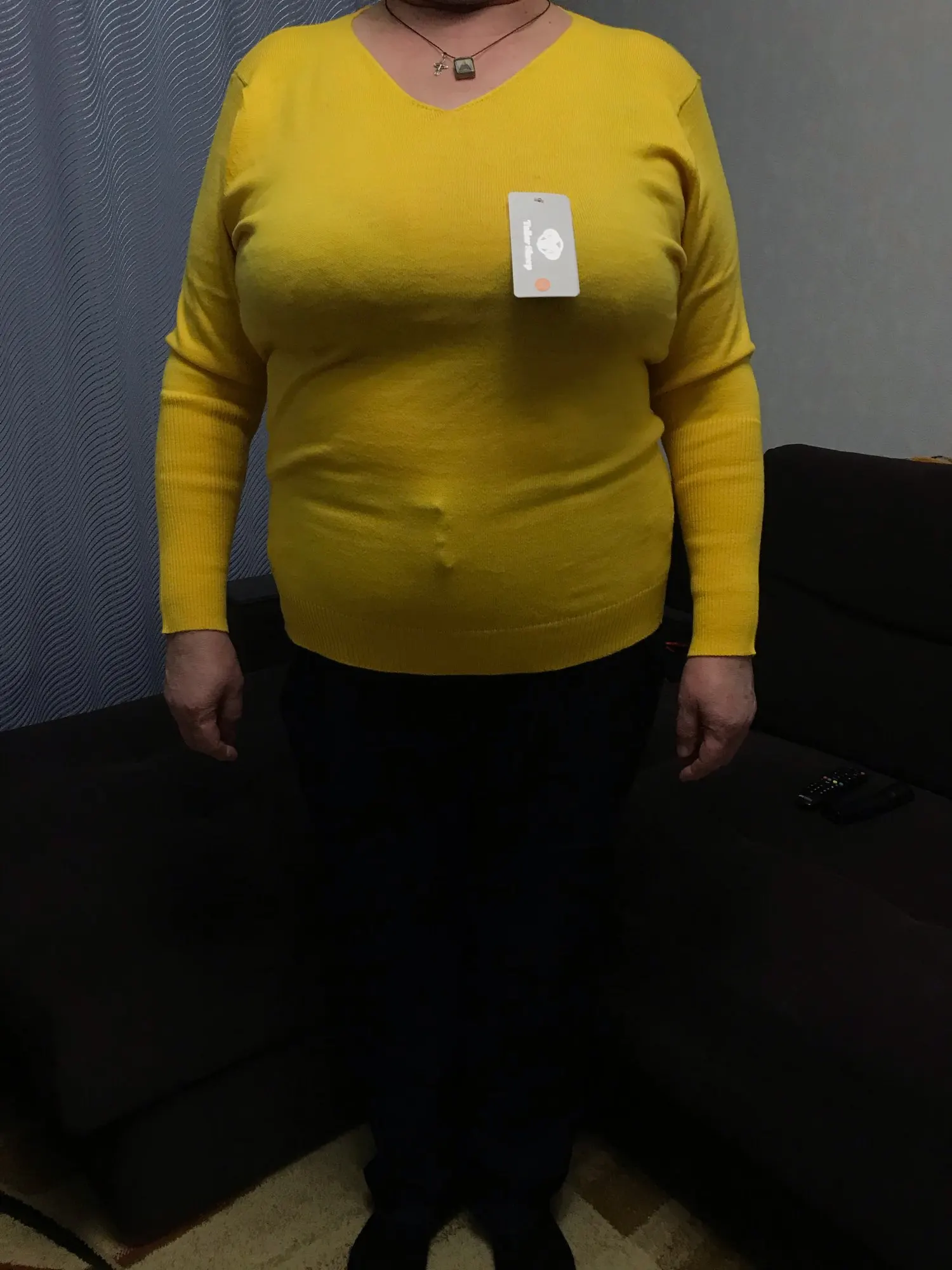 свитер хороший, соответствует описанию. на параметры 98-88-108 ххл подошёл идеально. покупкой довольна.