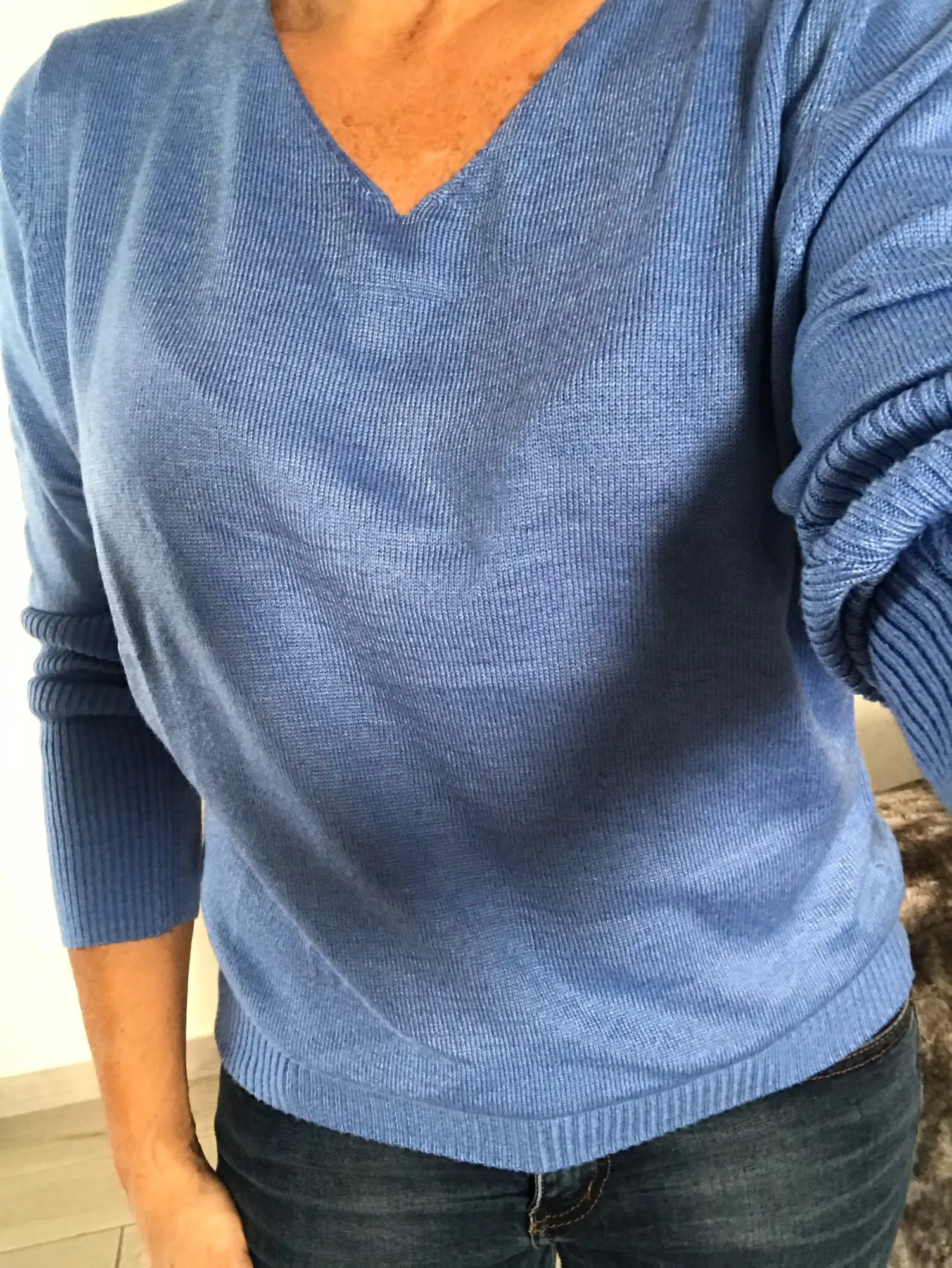 Покупала четыре джемпера голубой, жёлтый, бежевый и зелёный. Зеленый оказался, тоненький и не очень качество, видимо с другой пряжи. Голубой, жёлтый и бежевый очень хорошего качества.