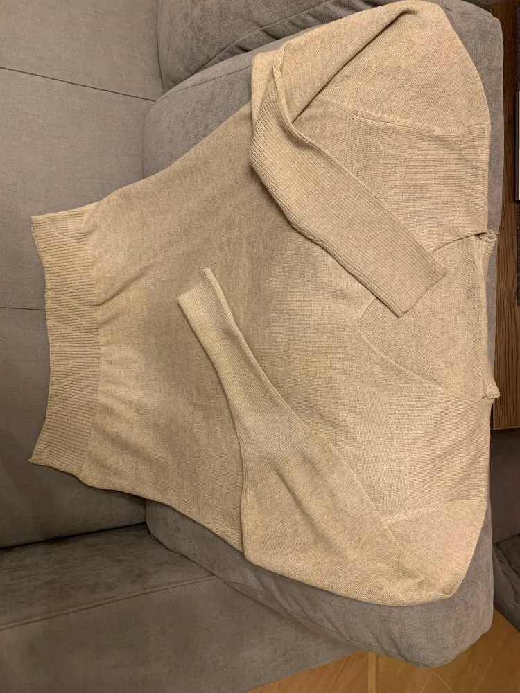 качество хорошее, рукава летучая мышь в районе локтя переходят в плотную вязку. не угодала с размером на 96-82-96 взяла 2XL и утонула.