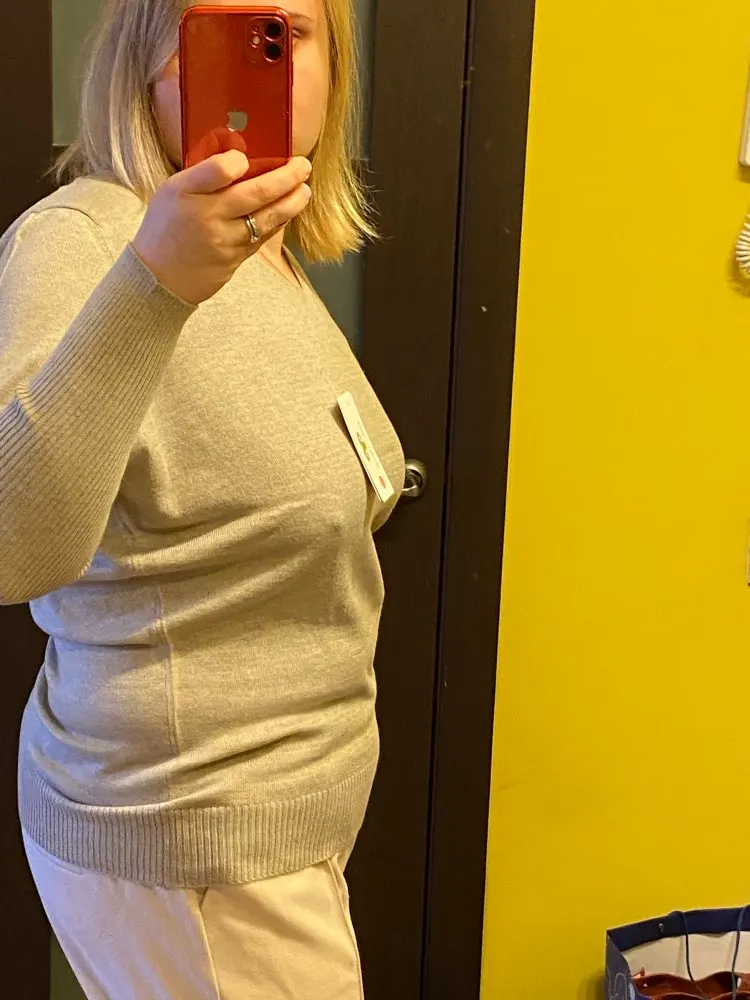 Хорошая кофточка, но к сожалению пришла с пятном в области груди, не отстиралась.