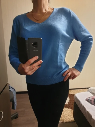 Красивый цвет (как на фотографии продавца, моя камера делает странные вещи) качество кажется хорошим, ширина груди 59 см2. Не могу сказать, кашемир или нет, но мягкий. Я бы порекомендовал его тем, кто ростом менее 170 см.