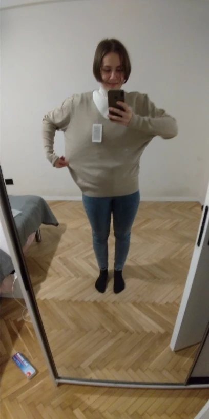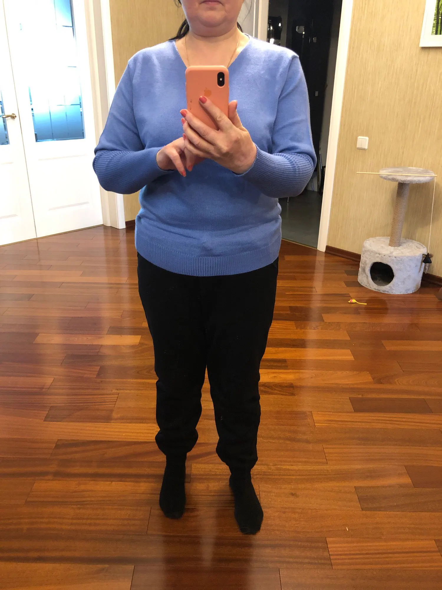 Свитер немного колет, но очень мягкий и приятный. на размер М и рост 161 взяла размер XL.