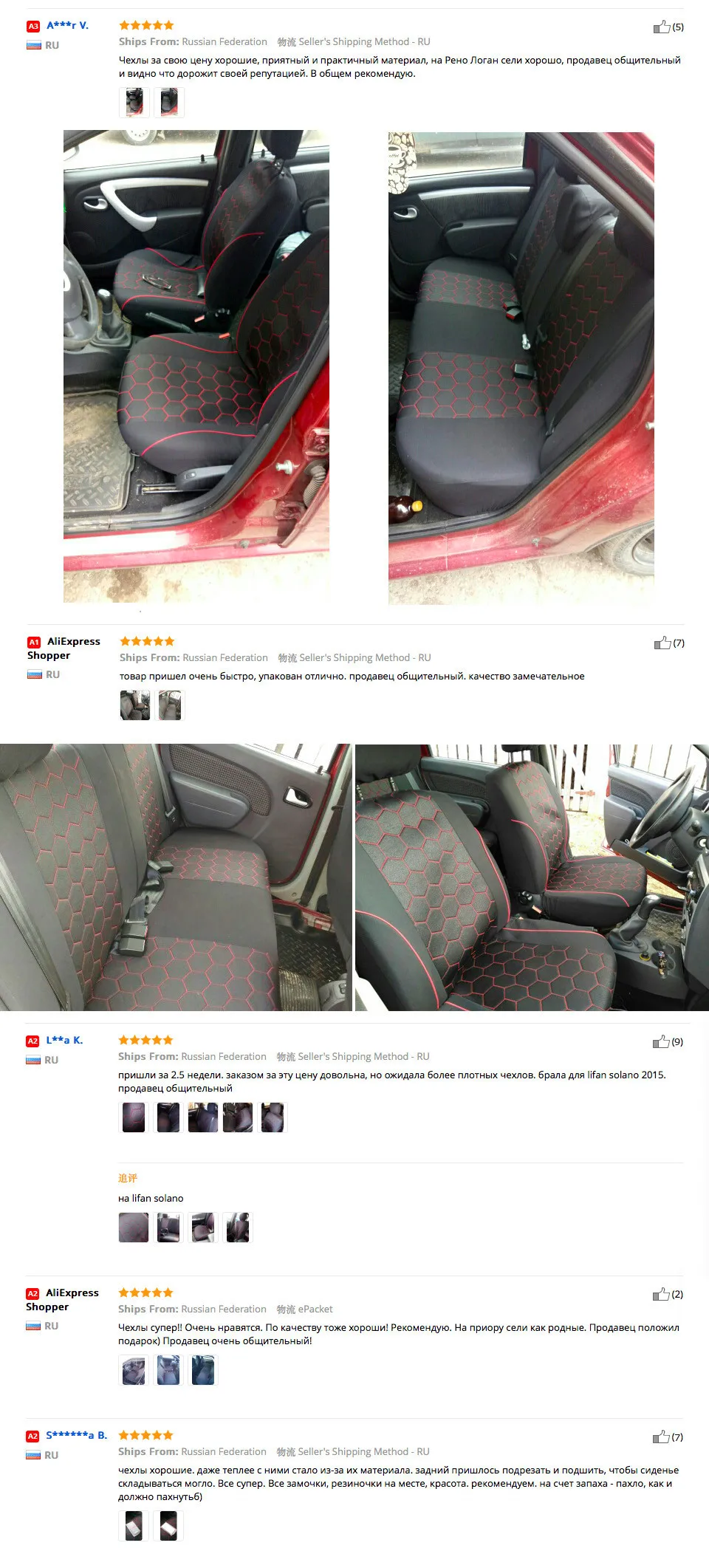 Очень быстрая доставка (заказ из России, 2-е суток). Чехлы универсальные, внешне красивые. На KIA SEED SW, подошли хорошо. Из недостатков: чехлы на подголовники великоваты, на чехле заднего сидения нет разделителя (диван из двух частей), на чехле спинки заднего сидения нет отверстий для подголовников, но есть молнии чтобы раздельно раскладывать спинку. Это всё исправимо, впечатление хорошее, рекомендую.
