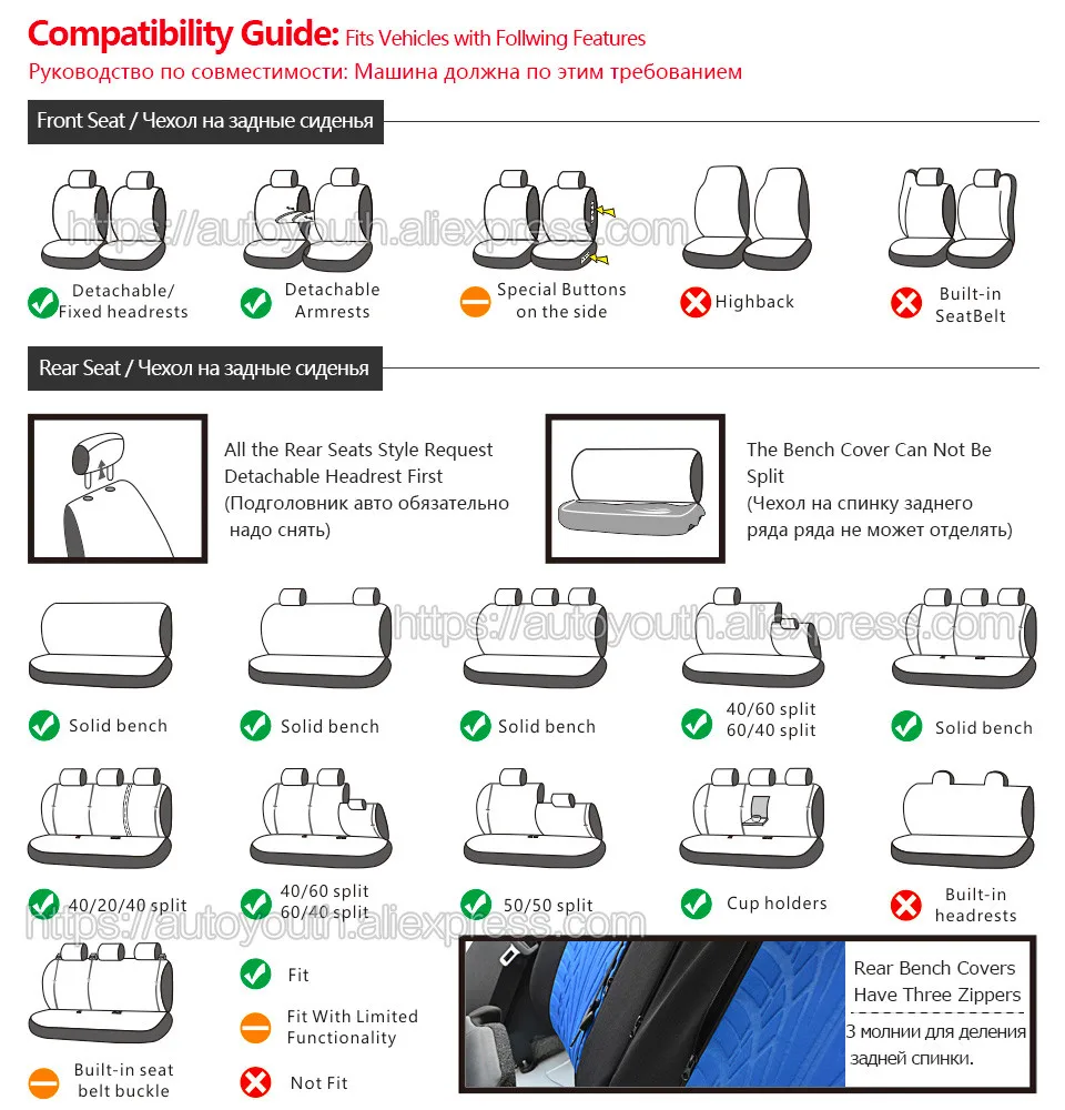 Чехлы на заднее сиденье не имеют отверстий для опоры головы, поэтому они не подходят для установки