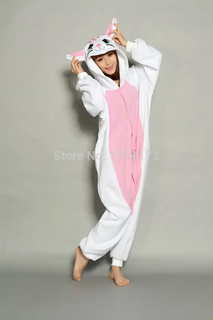 Кигуруми, пижама-комбинезон с белым котом, мультяшный костюм животного, косплей, пижамы, Комбинезоны для взрослых Вечерние вечернее платье, пижама на Хэллоуин