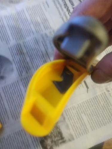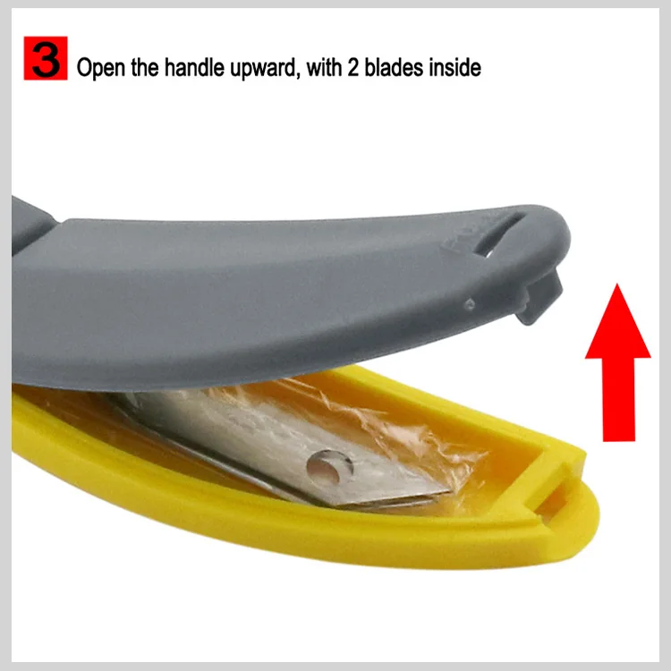 Качество пластмассы такое себе, но с задачей справляется. В комплекте три лезвия, которые прячутся в ручке.