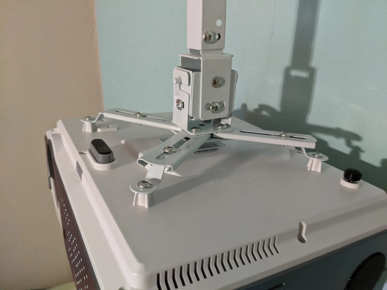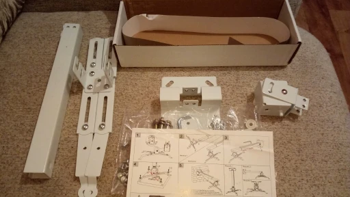очень быстро приехал курьерской доставкой. буквально за несколько дней.покупали для проектора WZATCO C2. подошел хорошо за счет того, что есть регулировка креплений. собрался мужем за полчаса. проблем с резьбой на болтах не возникло.