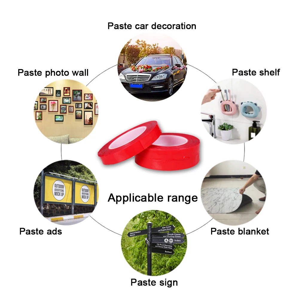 Используется лента на стены: Подходит для использования: Эмульсия, металл, стекло, керамика, бумага, почти все стены хорошего состояния могут быть использованы, за исключением тех стен, которые треснуты, влажные и сморщенные. Срок службы ленты может быть увеличен в два раза, если стены могут быть вытерты влажной и пыли перед наклеиванием. Применение на автомобиле: Все безделушки, мобильные стойки, мусорные корзины, духи и т. д. на вашем автомобиле могут всегда оставаться в положении независимо от того, насколько неровная дорога, что делает ваши вещи безопасными и на месте. Если вам нужно удалить акриловую монтажную ленту, лучше удалить ее в течение 72 часов и после 72 часов, лента может занять больше времени для удаления. Применение для домашних аксессуаров: За исключением аксессуаров ниже (крышка для картин на стену), лента может использоваться дома для более легких или тяжелых частей в ванной, гостиной, комнате для кровати, кухне и т. д.
