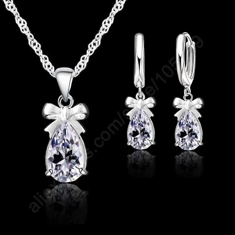 JEXXI новый подарочный набор S90 серебро с белым камнем кубического циркония висячие серьги, ожерелья женский Ювелирный Комплект
