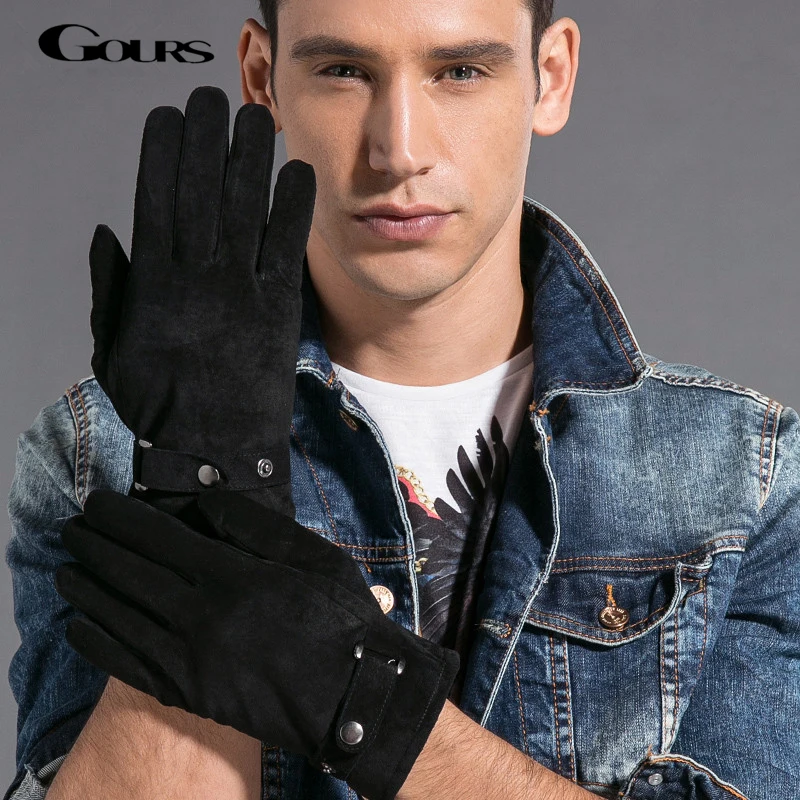 Gours 2017 Новинка зимы Для мужчин Пояса из натуральной кожи Прихватки для мангала свиной варежки из матовой кожи 5 цвет модный бренд вождения теплые Прихватки для мангала GSM001