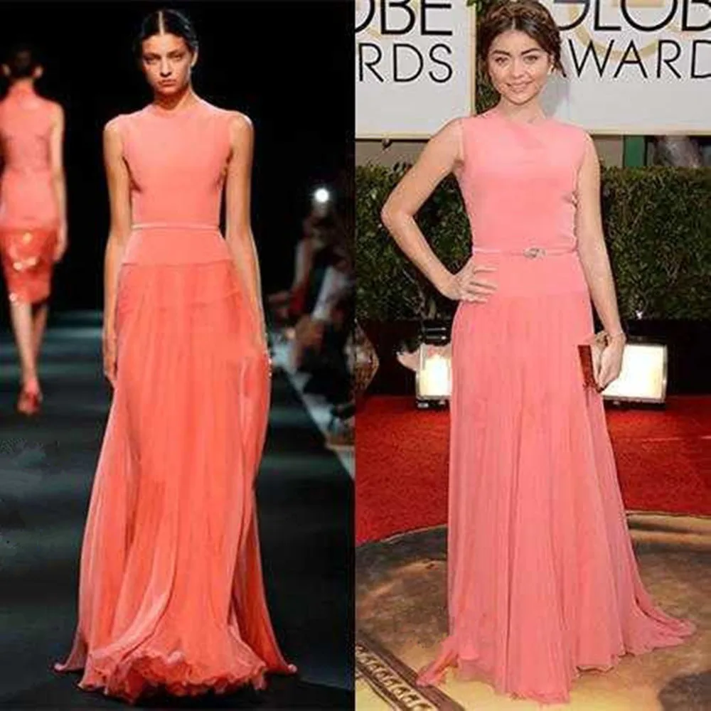 Простые элегантные вечерние платья знаменитостей золотые земные награды трапециевидные коралловые плиссированные шифоновые платья с красной ковровой дорожкой платья для выпускного вечера