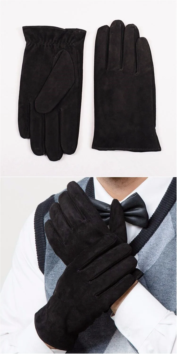 Мужские теплые кожаные перчатки Gours, зимние черные перчатки из натуральной козьей кожи и замши, с возможностью управления сенсорным экраном