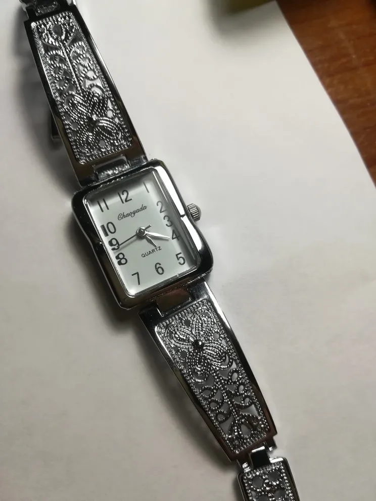 Часы женские кварцевые, с прямоугольным циферблатом и резным узором