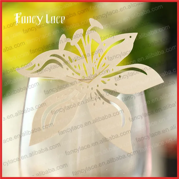 60 шт. лазерная резка украшения для рейв-вечеринки именные карточки для винного стекла, лилия в форме цветка Бумажные подвесные украшения для вечеринки