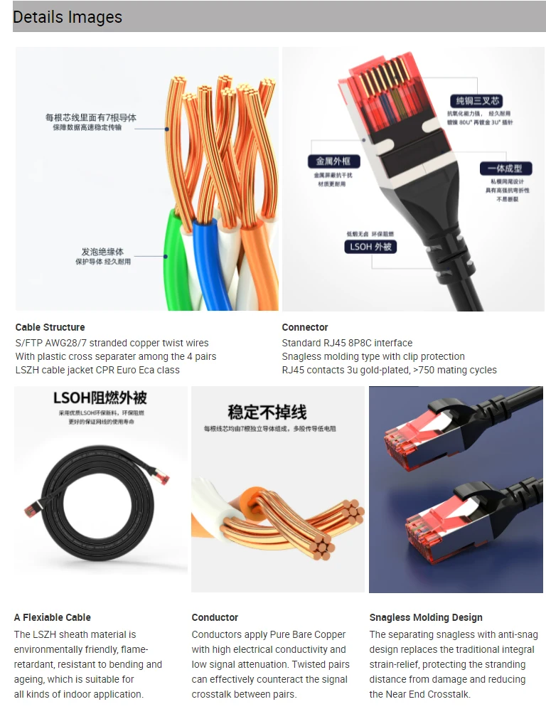 Сетевой патч-корд RJ45 Cat 6 SFTP, сетевой патч-корд, сетевой патч-корд без agless, экранированный LSZH 0,250,51235 м