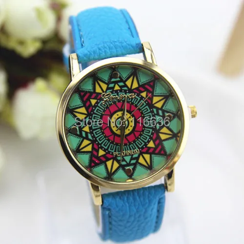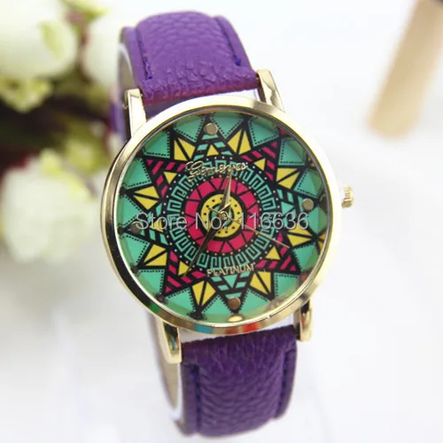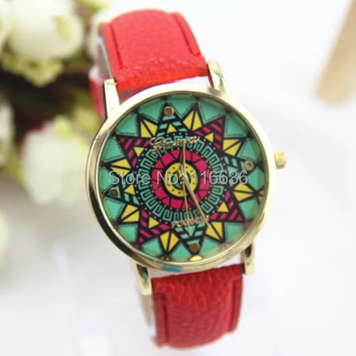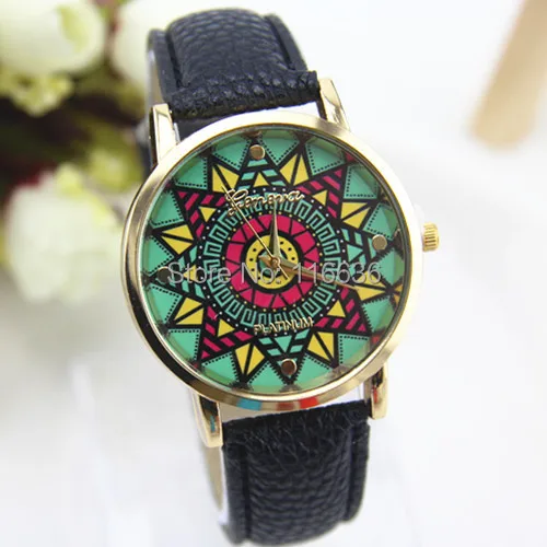 Женские винтажные часы Geneva с цветами и полосками в горошек, наручные часы из искусственной кожи, повседневные часы 20p