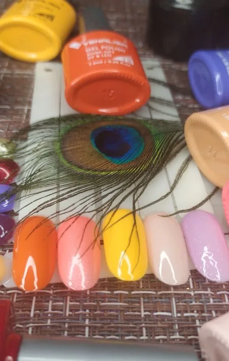 Гель лаки невероятные! Какие-то ложатся в один слой, какие-то надо в два. На типсах все в 1. Наполняемость по плечики, не полосят. Однозначно буду заказывать ещё. Спасибо большое!!! Минус, доставка долгая(((