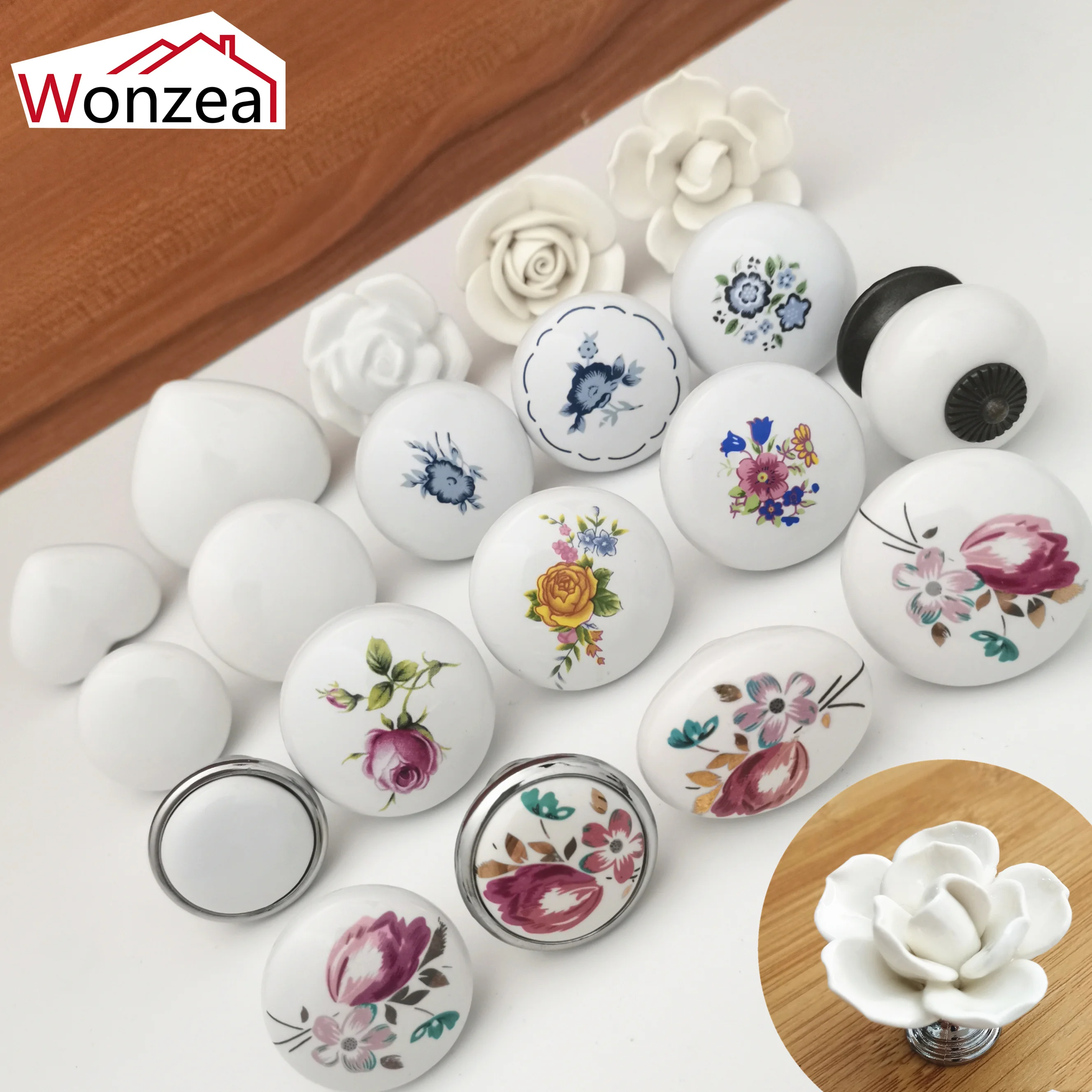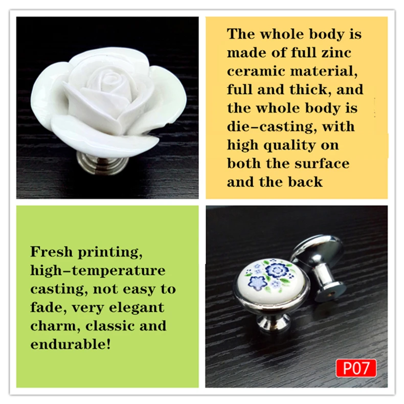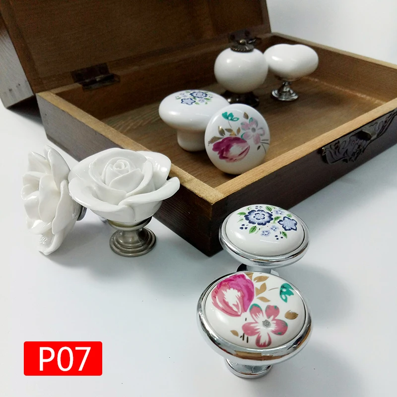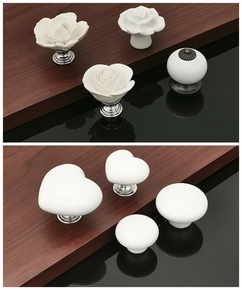 Ручка для шкафа, белая роза, лотос, любовь, простая, керамический с одним отверстием ручка, для кухонной мебели, ручки для выдвижных ящиков в форме сердца